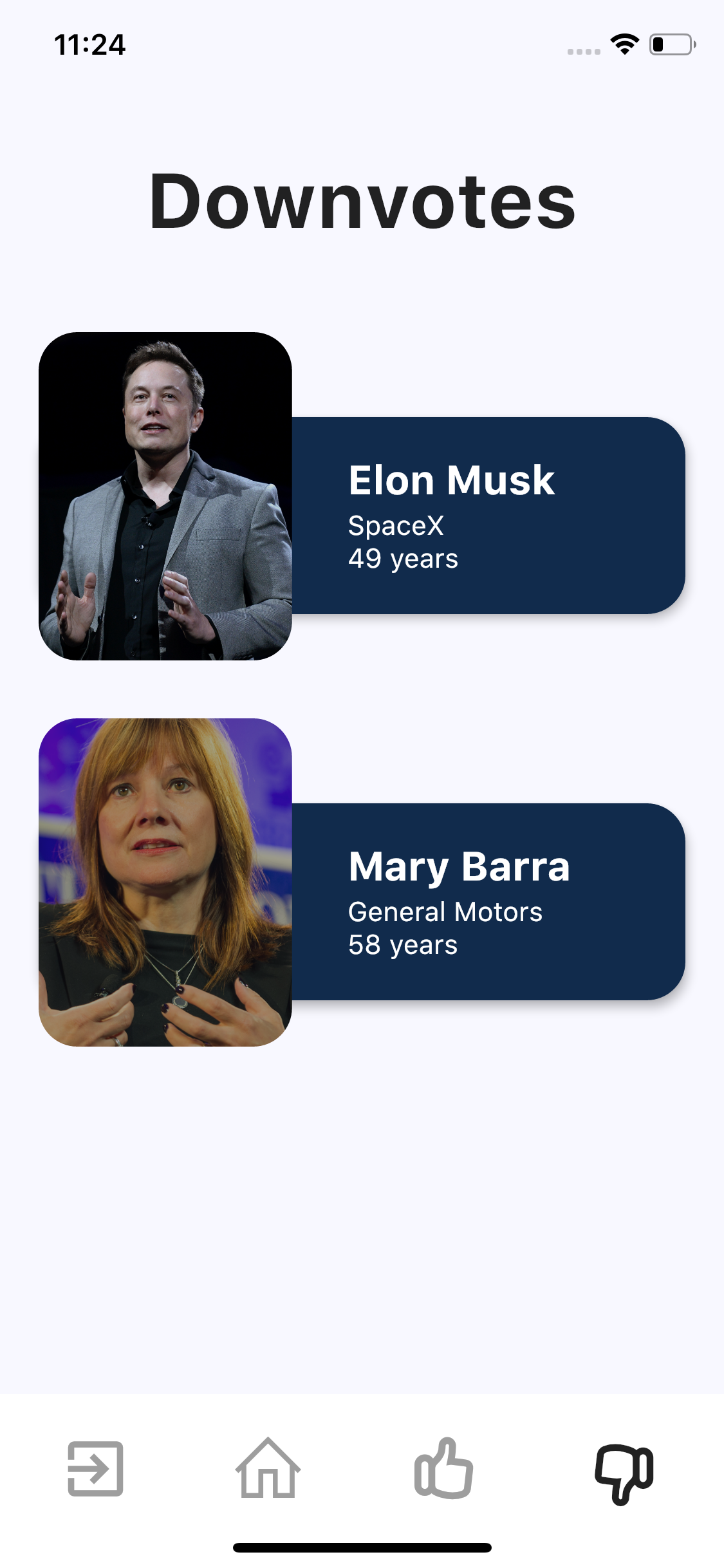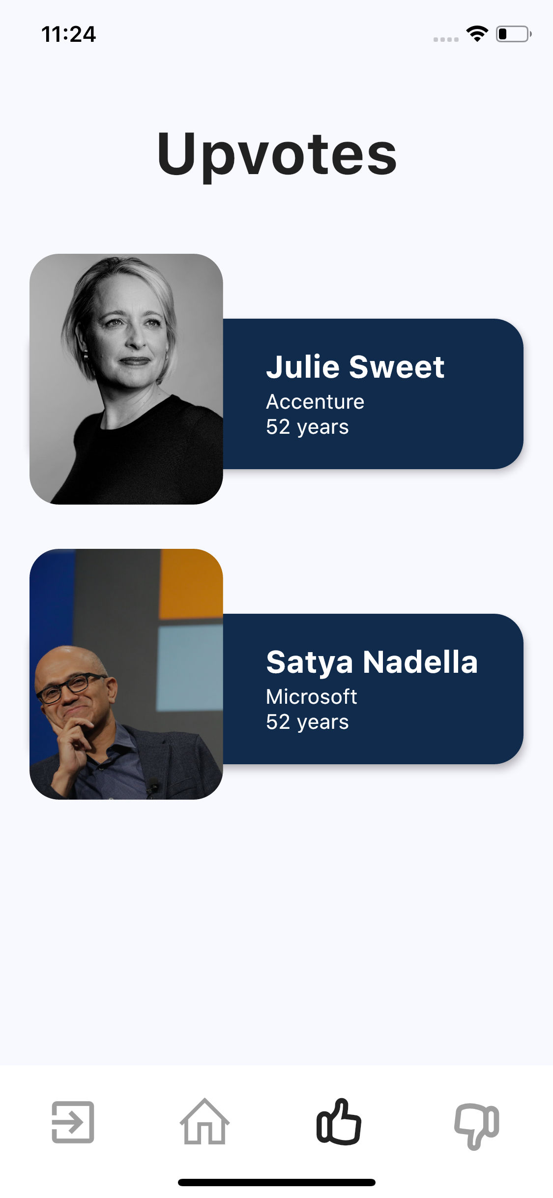 An application made using flutter that displays information about various CEOS, and allows the user to upvote or downvote the CEOs by swiping right for upvote and swiping left for downvote.