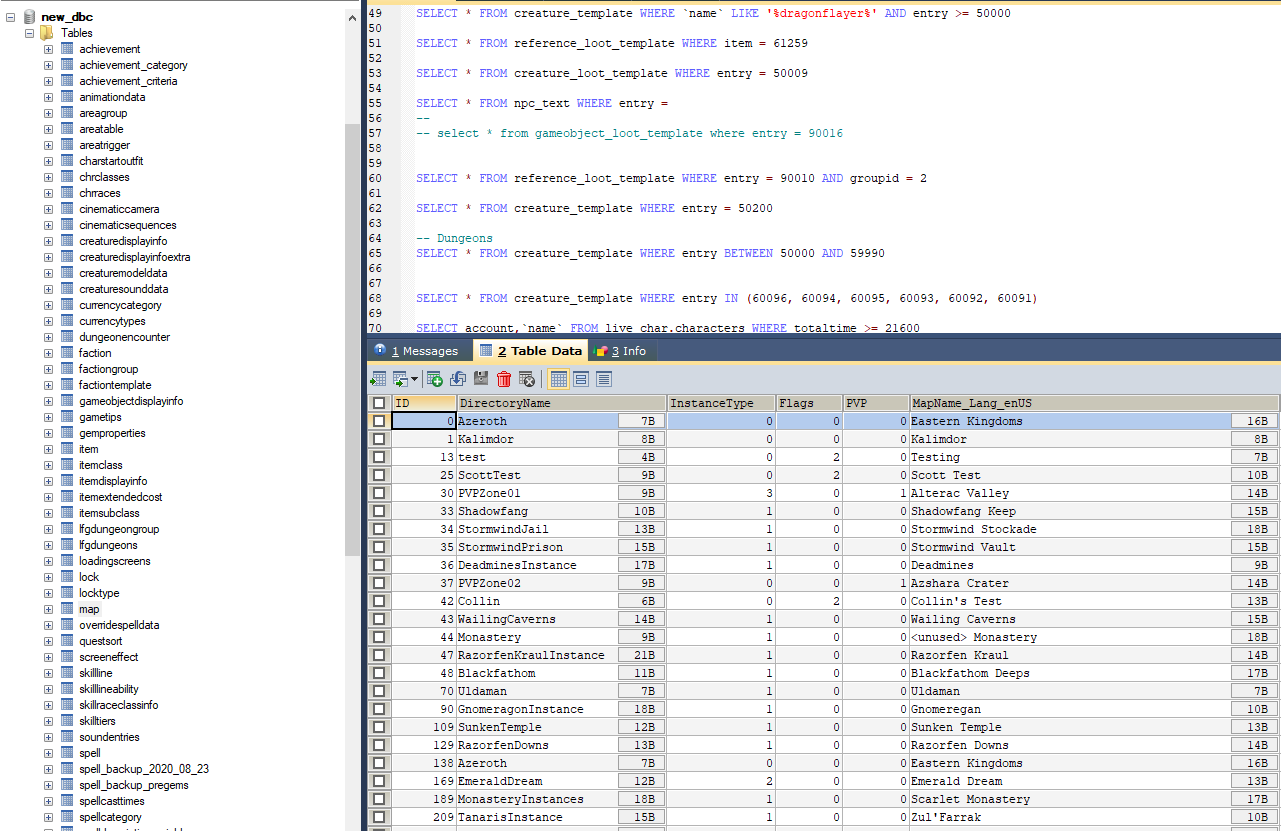This means that I can make changes to the data on my own computer with a SQL editor, run the Jenkins job, pull the client repo (which automatically updates my WoW client folder with a symlink), and that's it - I can test it in game.