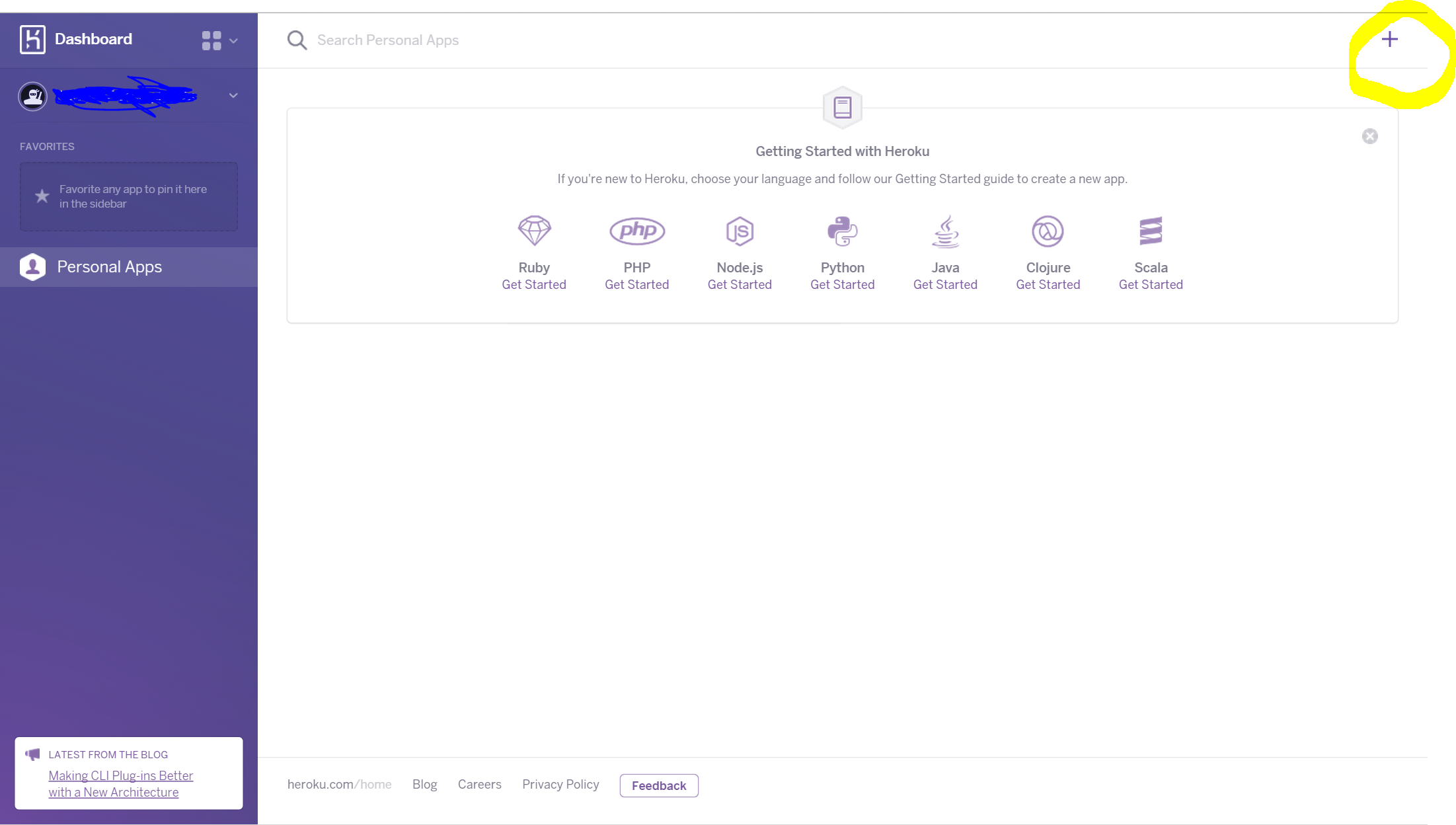 We don't have any Heroku apps yet, so why don't we make a new one.