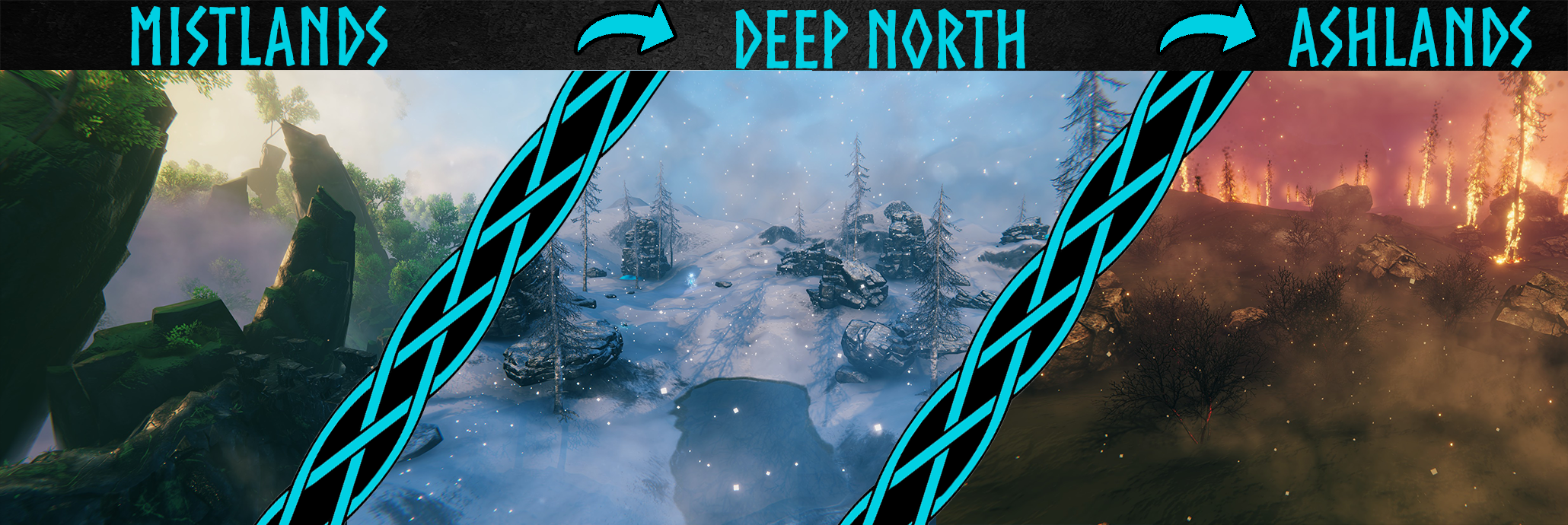 - Navigate the challenging terrains of Mistlands, Deepnorth, and Ashlands with the help of custom Vegvisirs, which guide you to the nearest corresponding boss altar.