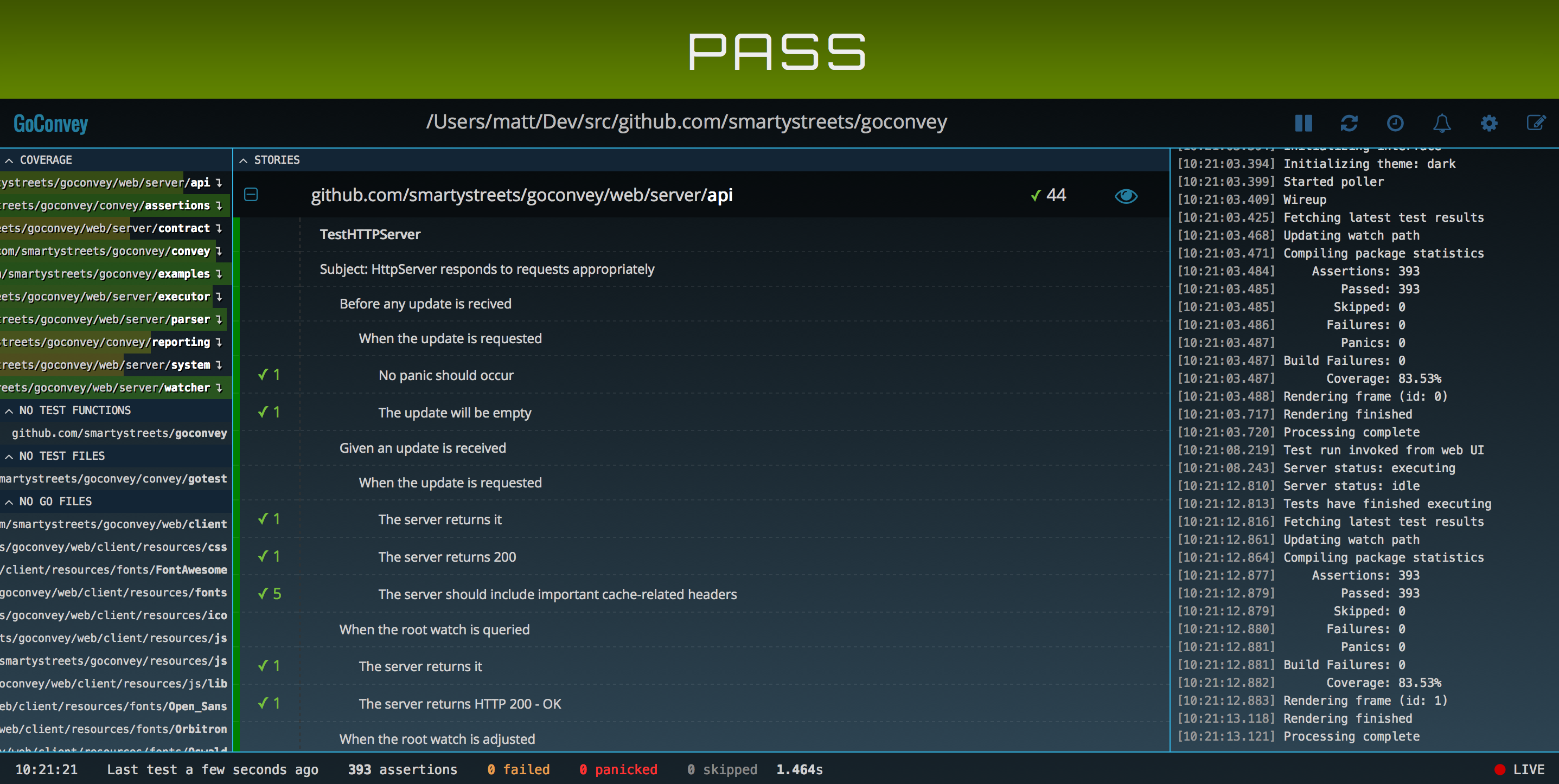 }Start up the GoConvey web server at your project's path: