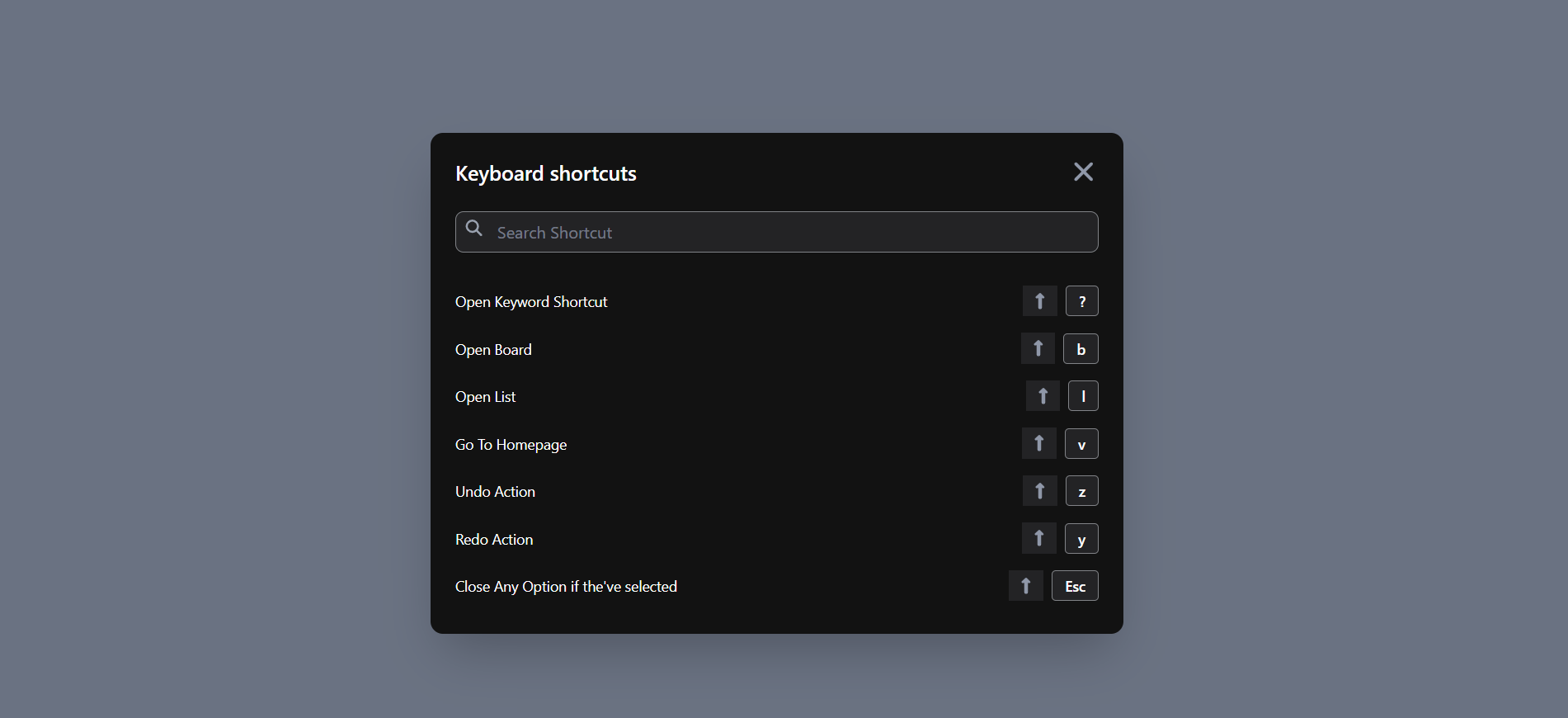 control+?or header bar option. - Implemen the full keyword shortcut: 01/16