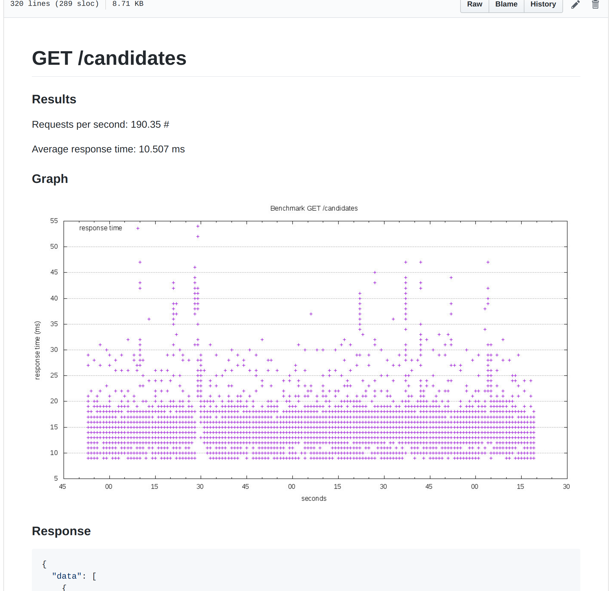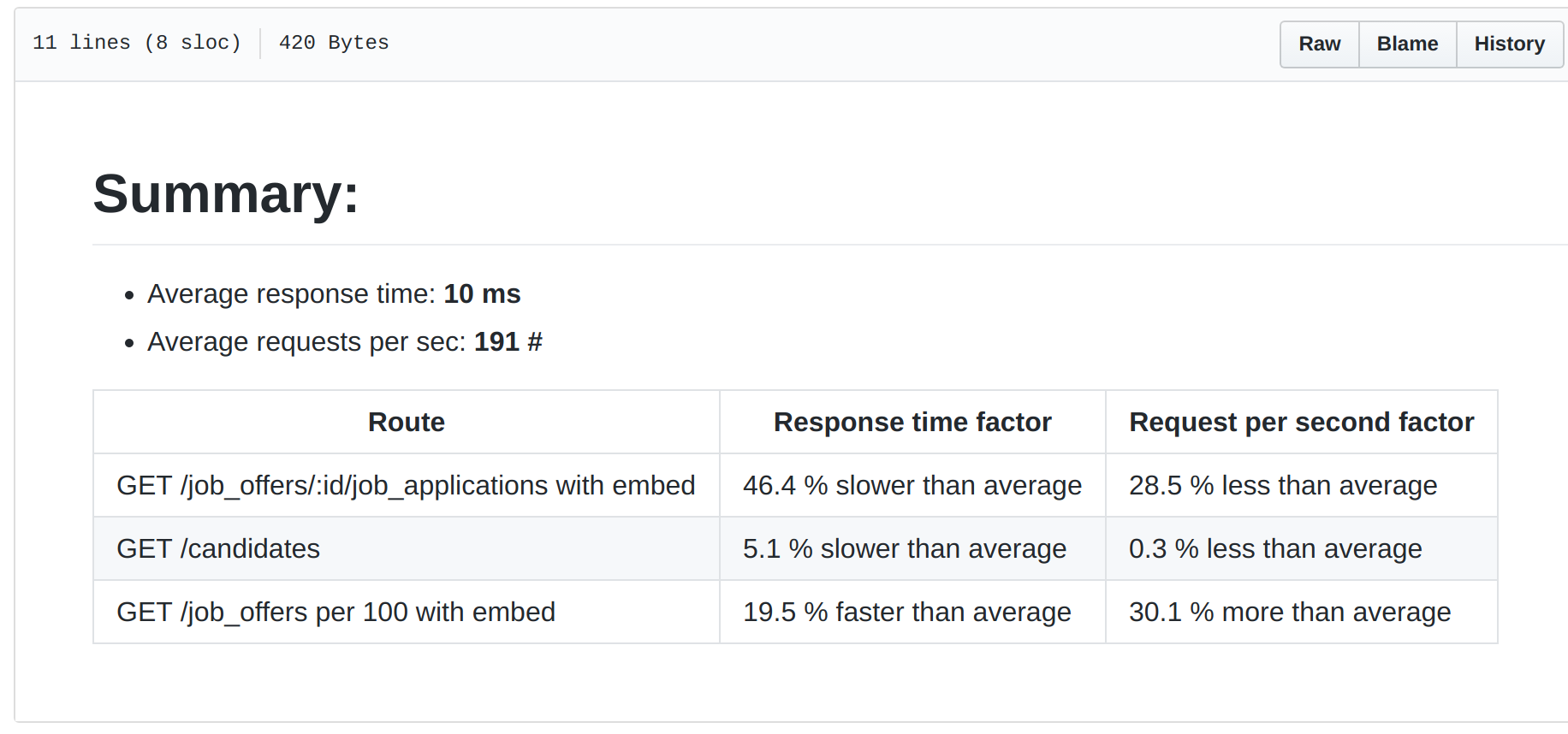 rails api:benchmarkThe README is the benchmark index, the page you’ll see in benchmark/ folder. It lists all the routes configured to be benchmarked: