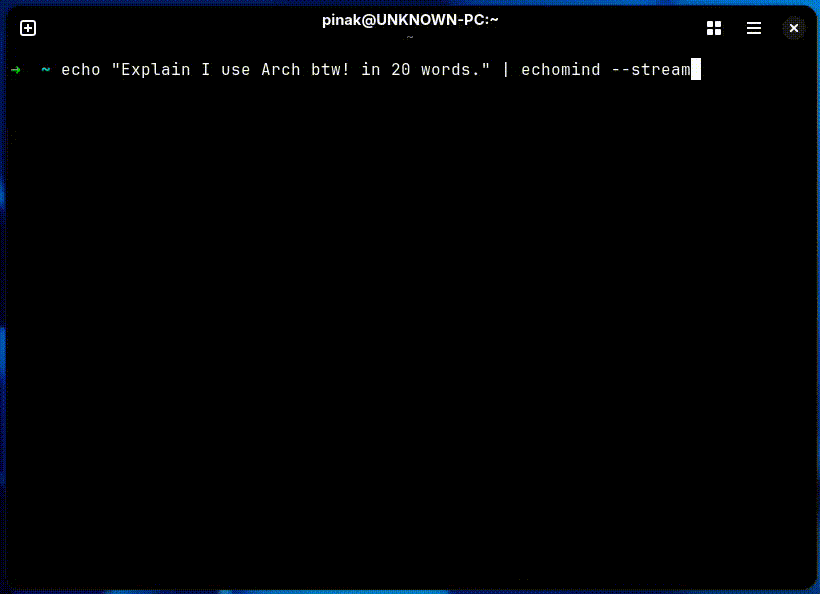 echo "Write a story" | echomind --stream