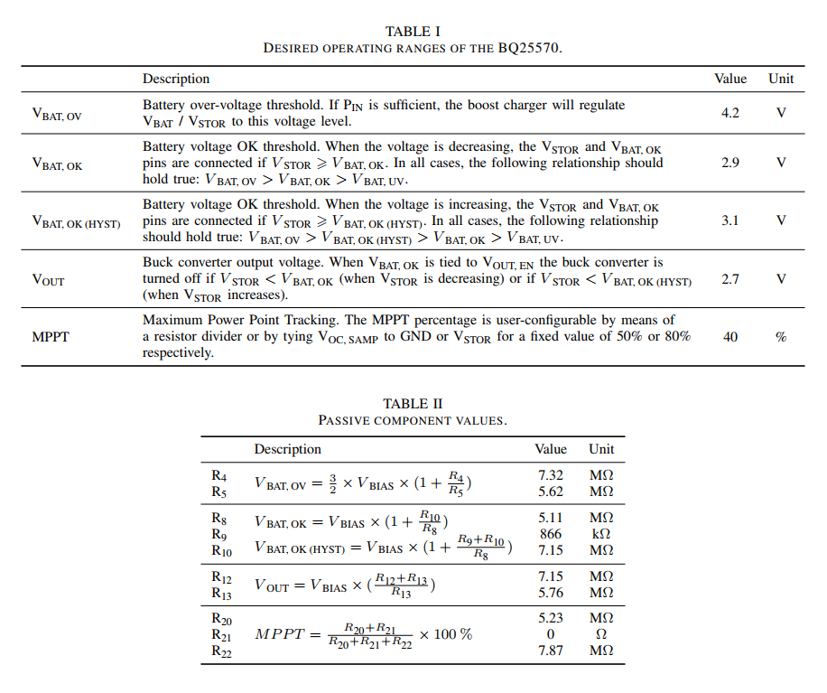 According to the design principles and other useful information laid out in EHM\Datasheets\bq25570.pdf and EHM\Literature\sluuaa7a.pdf, the BQ25570 IC allows for a number of configurations to be made pertaining to its operation. But before we can start you might be wondering, what exactly is the function of this chip? The following quote should start to make things somewhat clear: