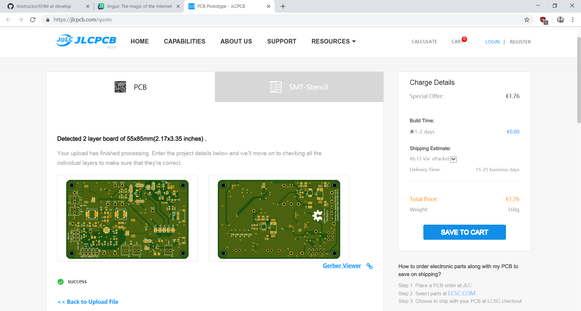Note: choosing a lead-free finish will add €5.30 to the total price. However, since most hobbyist solder with leaded solder anyway, you must ask yourself whether shelling out extra money for a small batch of prototypes is worth it.