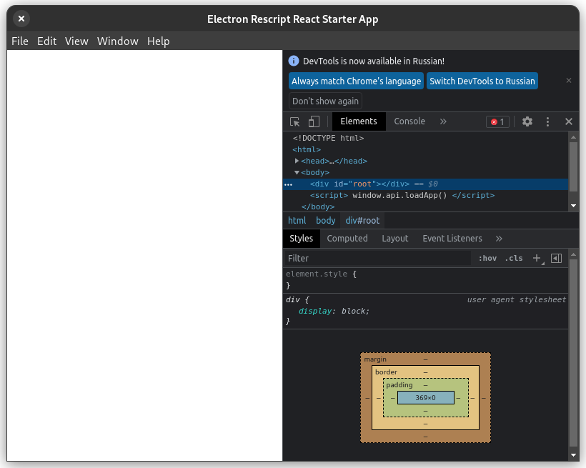 {React.string("ReScript Electron App Starter")}