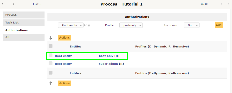 4. Edit 'Authorizations' so that users with a profile authorized on simplified interface will be able to start a case