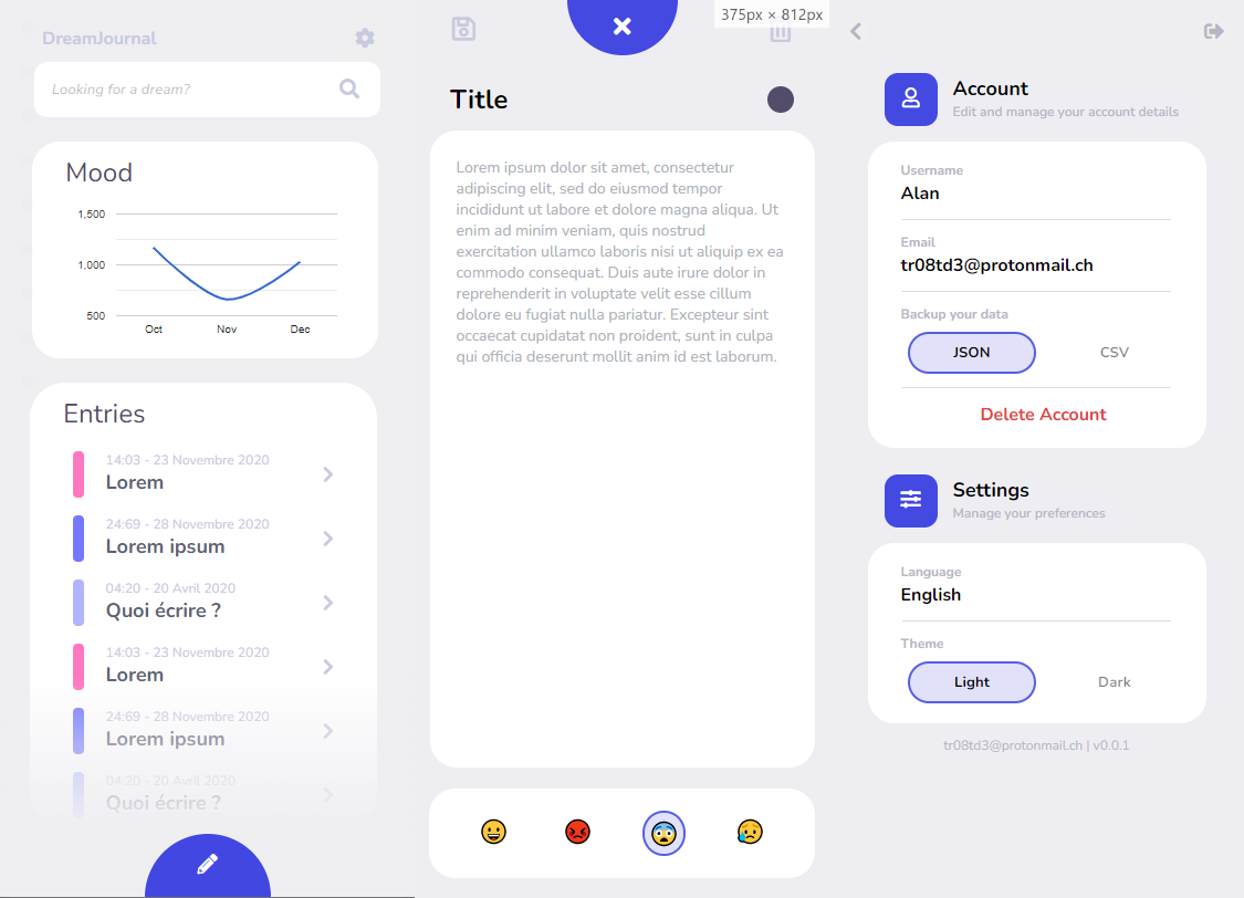 - Have the possibility to backup dreams (json/csv)