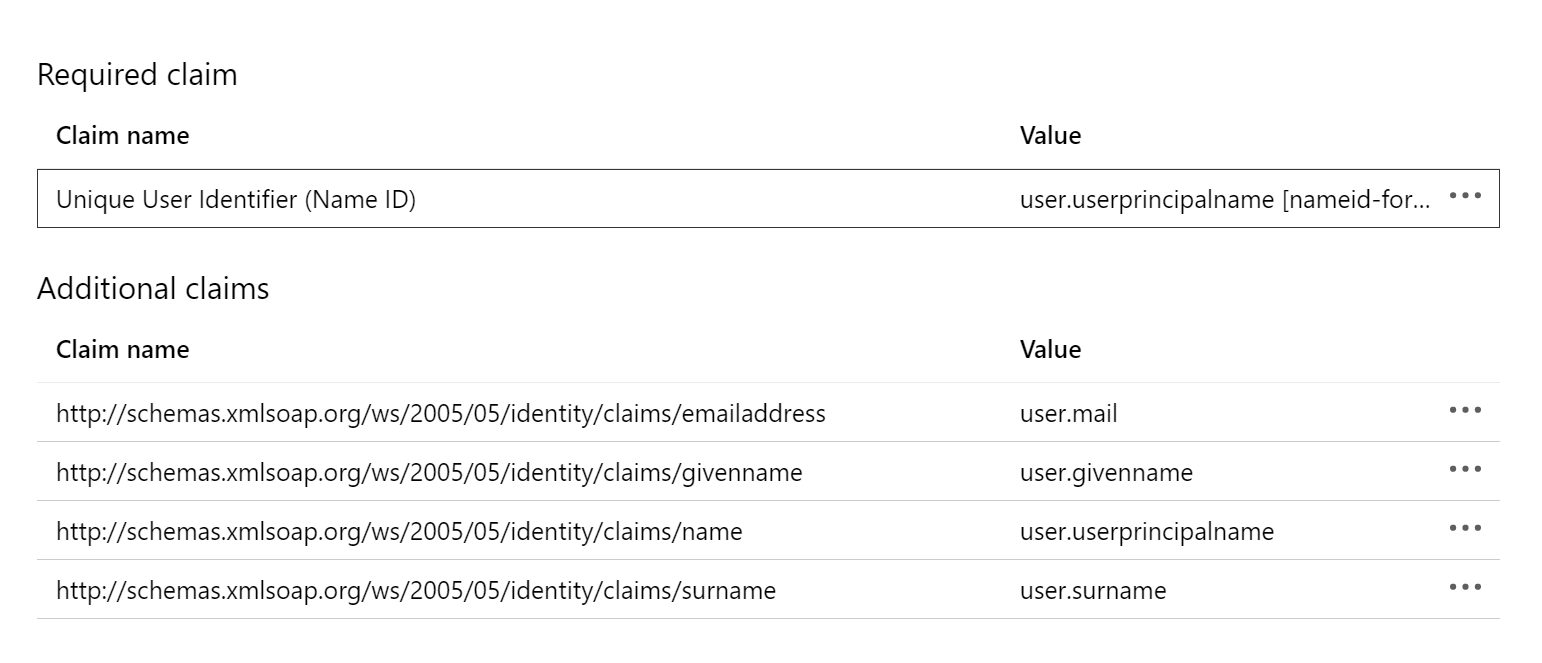 I'm currently working on getting SAML2 authentication working. I know that our SAML2 IdP (Azure AD) will return emailaddress as a claim name, which I think is a SAML2 attribute. This is its configuration:
