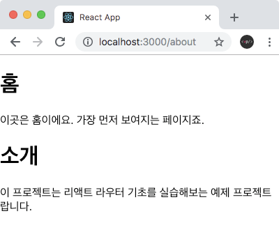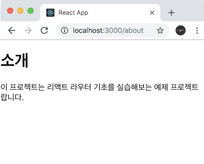 <p>이 프로젝트는 리액트 라우터 기초를 실습해보는 예제 프로젝트랍니다.</p>