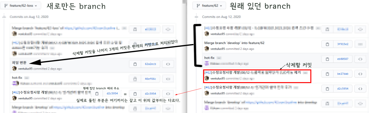 ์ง๊ธ ๋ด๊ฐ ์ฒํ ๊ฒฝ์ฐ๋ ๊ธฐ๋ฅ ์ญ์ ์ปค๋ฐ์ ์ง์ฐ๊ฒ๋๋ฉด ์ญ์ ๋ ํ์ผ์ ๋ค์ ๋์ด๋ฆฌ๋ ๊ฒ์ด๋ค. ๊ทธ๋์ ๊ทธ ์ปค๋ฐ๋ง ๋นผ๊ณ ๋๋จธ์ง ์ปค๋ฐ์ ์ ์ง๋ ์ํ๋ก ๋์์ค๊ฒ ๋๋ค.