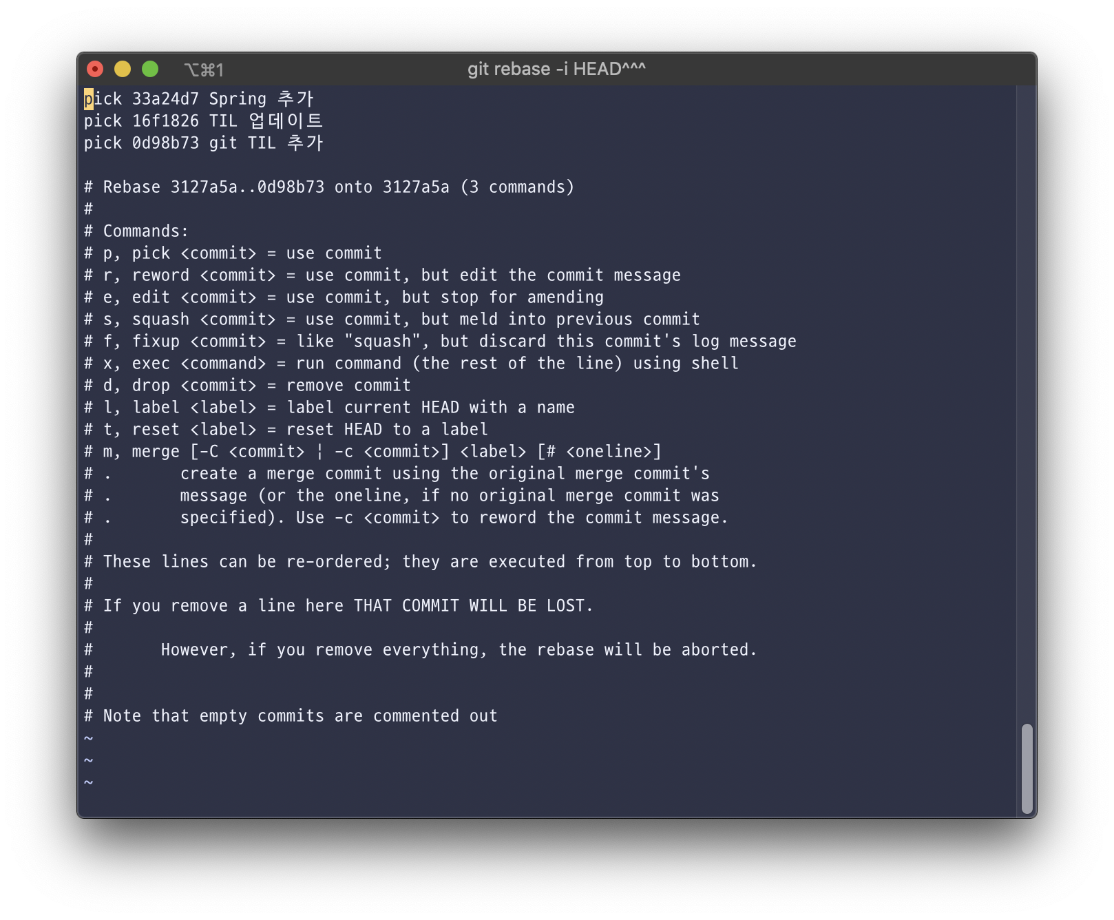 git Rebase๋ฅผ ํตํด์ ์ด์ ์ ์ปค๋ฐ์ ํตํด์ ํ์ํ ๋ถ๋ถ์ ์ฒ๋ฆฌํ ์ ์๋ ๋ฐฉ๋ฒ์ด ์กด์ฌํ๋ค.