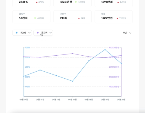 - 광고 관리 영역에서 전체, 진행중, 중단됨 세 상태로 필터링하여 화면을 구성하였습니다.