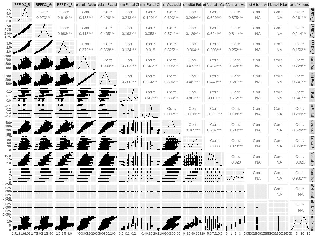 paris_graph PairPlot ggpairs refractive index ml refractive index ml2 refractive index ml3