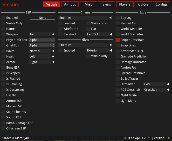 Skinchanger doesn't work, how do I make it work? -- You need to put file called skin_kits.json into C:\Sensum