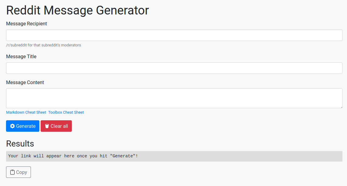 Creates a prefilled link to send a message on Reddit.