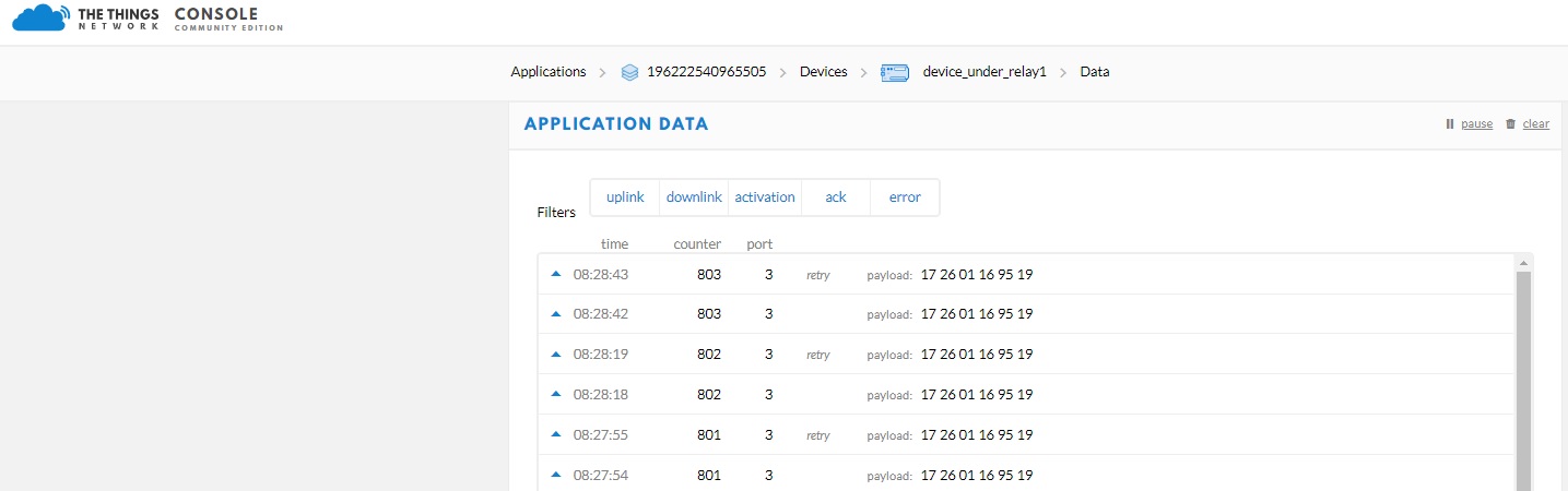 - Downlink check : the sensor is configured to retransmit all the applicative downlink in it next uplink. So each time the sensor will received a downlink , the next uplink inside the ttn console should be a copy of the downlink.