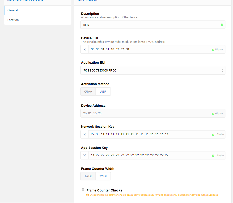 For demo purpose, disable Frame counter checks (as on the figure below), this way you should see on your TTN data console the packets received twice : first time by the LoRaWAN GATEWAY as Usual and a second time by the "Virtual Gateway" (the relay)