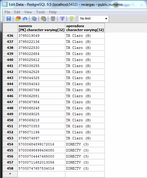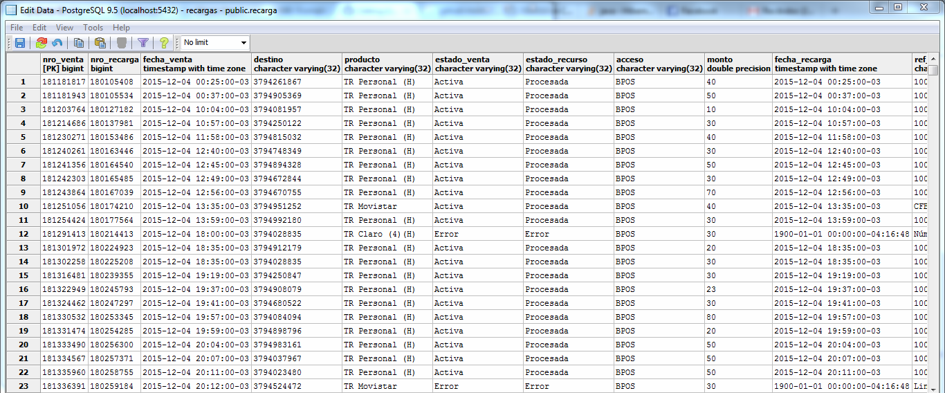 }Actualmente tengo una base de datos de todas las recargas de saldo virtual realizados en el comercio de mis padres, se ve algo así: