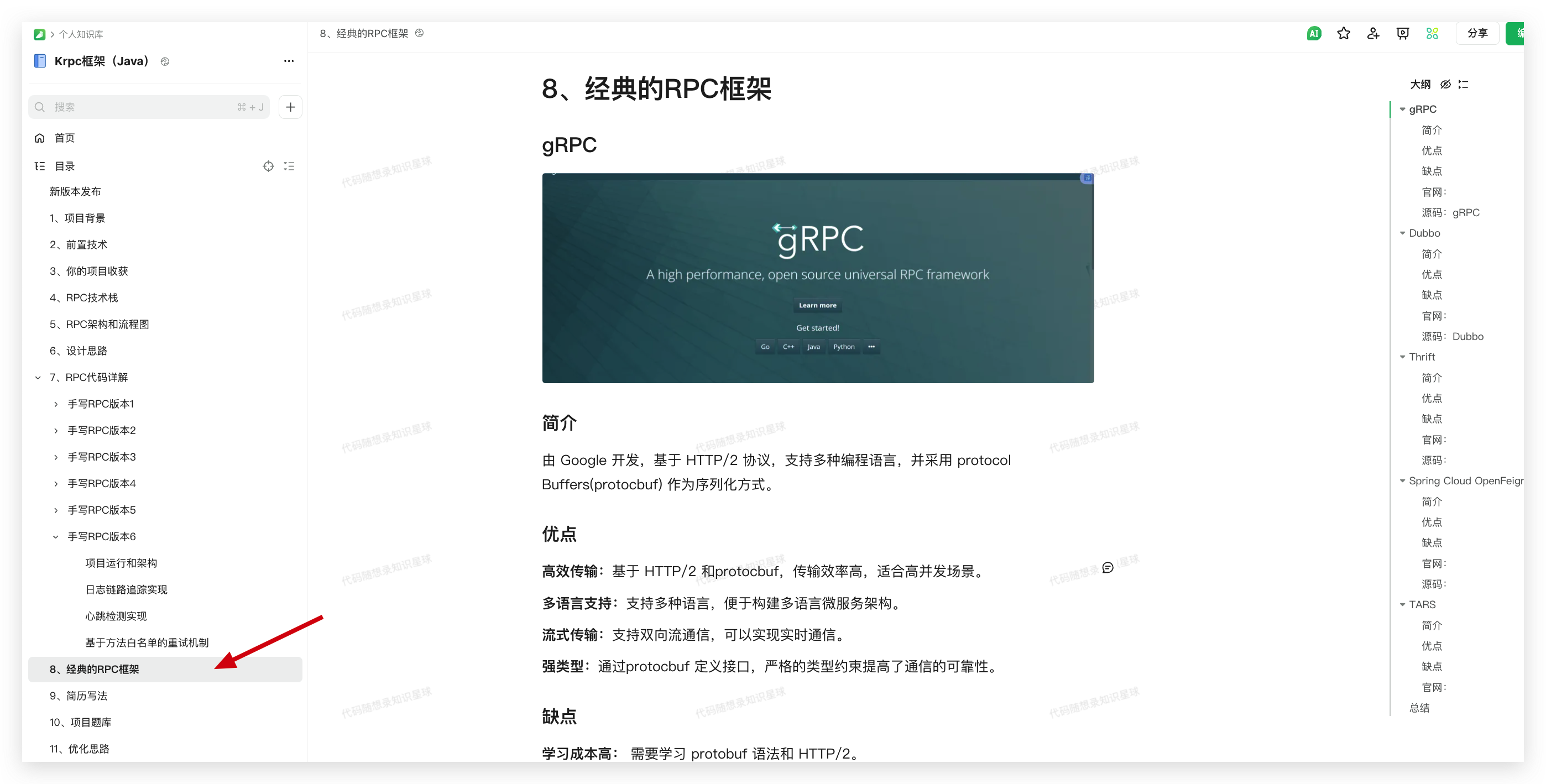 补充了经典 RPC 框架的介绍及优缺点,并在对应下面提供了,文档地址和源码链接。