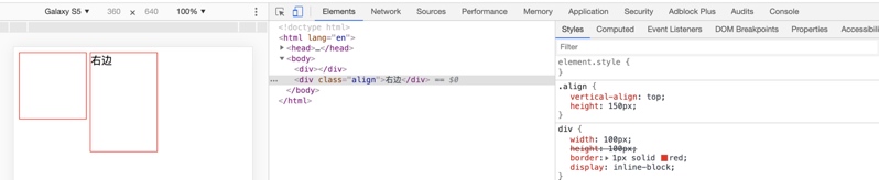 vertical-align:top,神奇的让右边的 div 再次和左边的 div 水平对齐了。