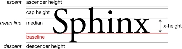 它是英文字母小写的 x 下边缘线就是基线,而且字母 x 的高度也称为 x-height。